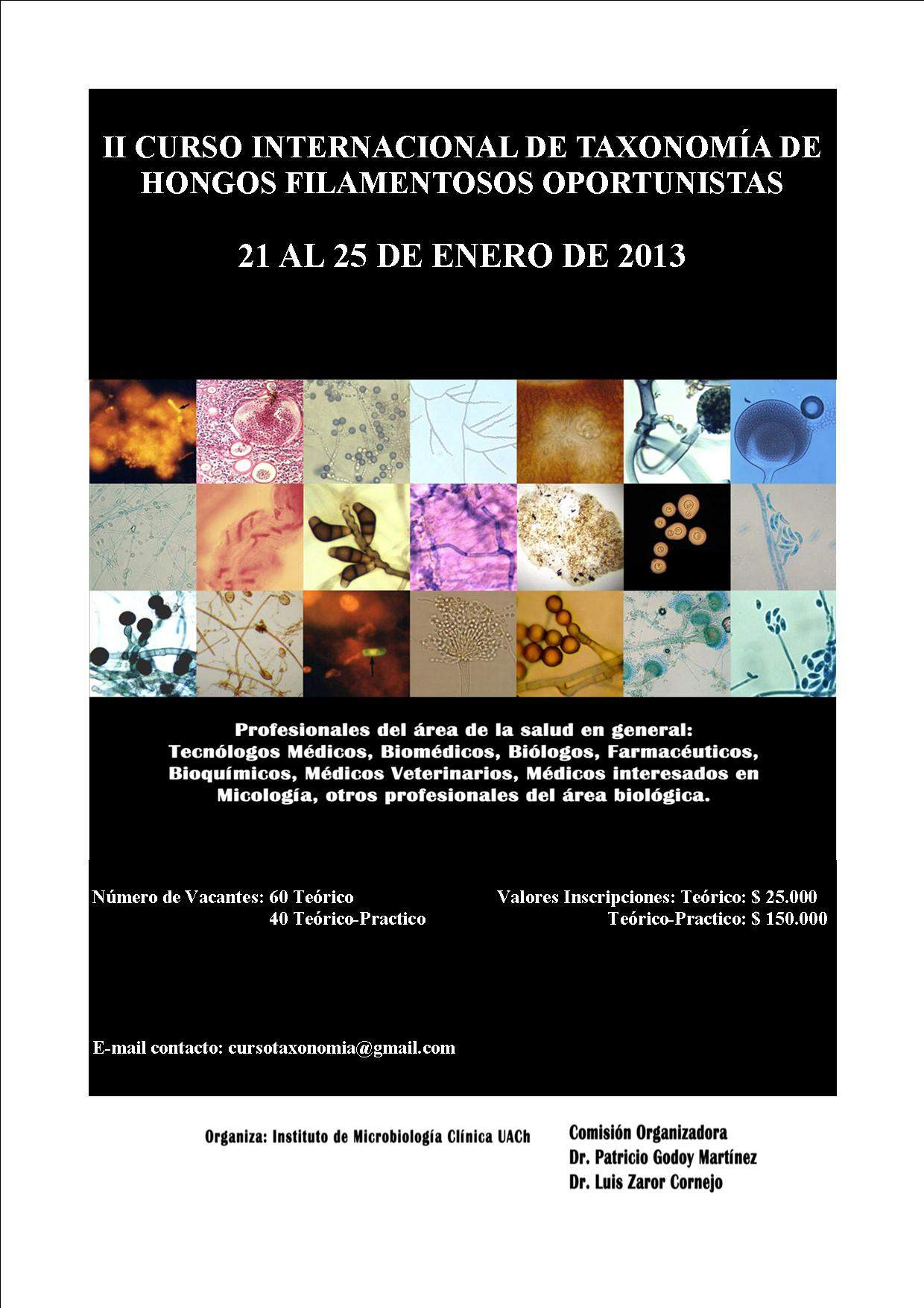Desde el día 21 al 25 de enero del próximo año 2013, se celebrará en la Facultad de Medicina, Universidad Austral de Chile, Isla Teja, Valdivia, el II Curso Internacional de Taxonomía de Hongos Filamentosos Oportunistas. El plazo de inscripción es hasta el día 10 de enero de 2013.